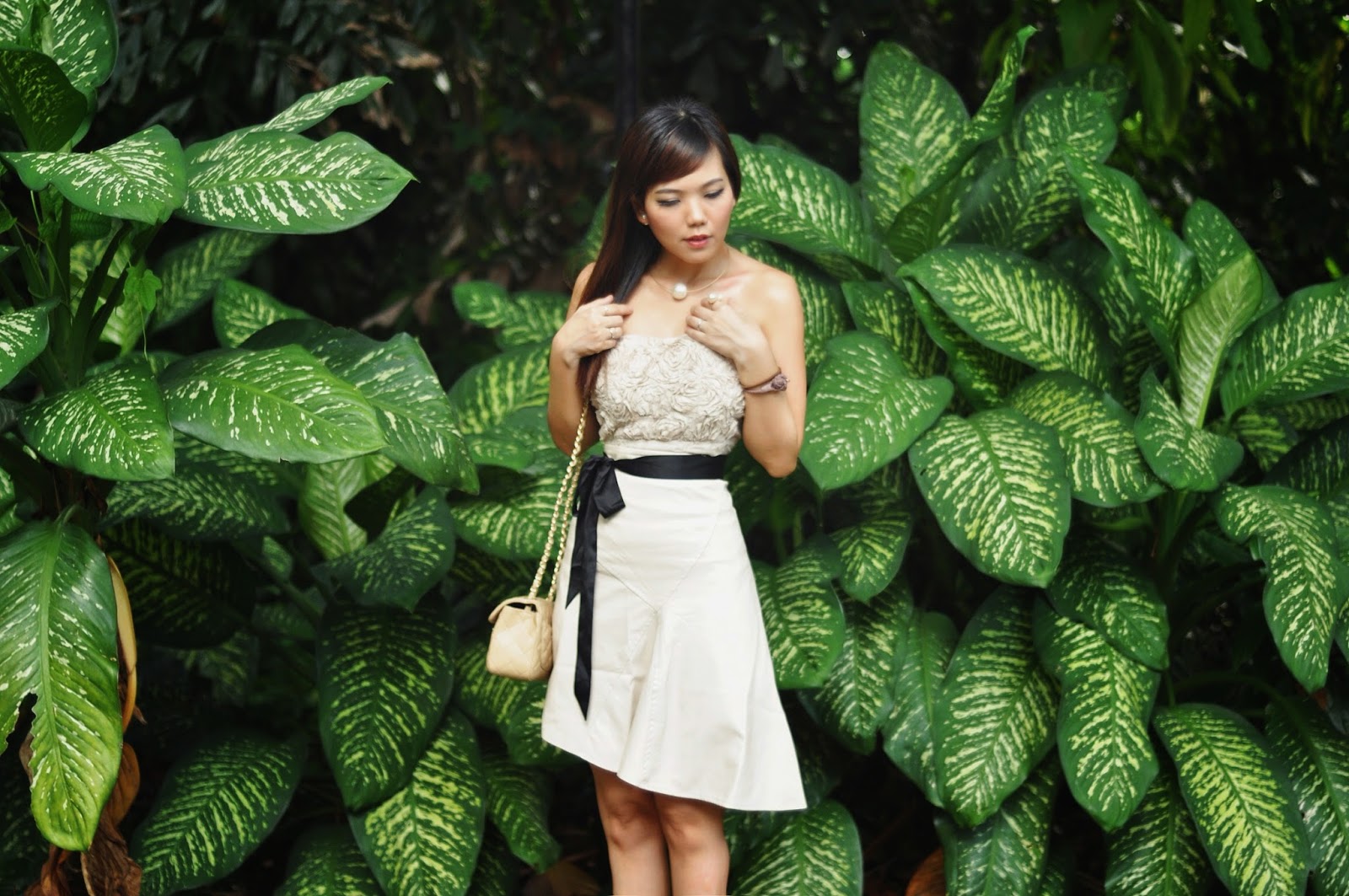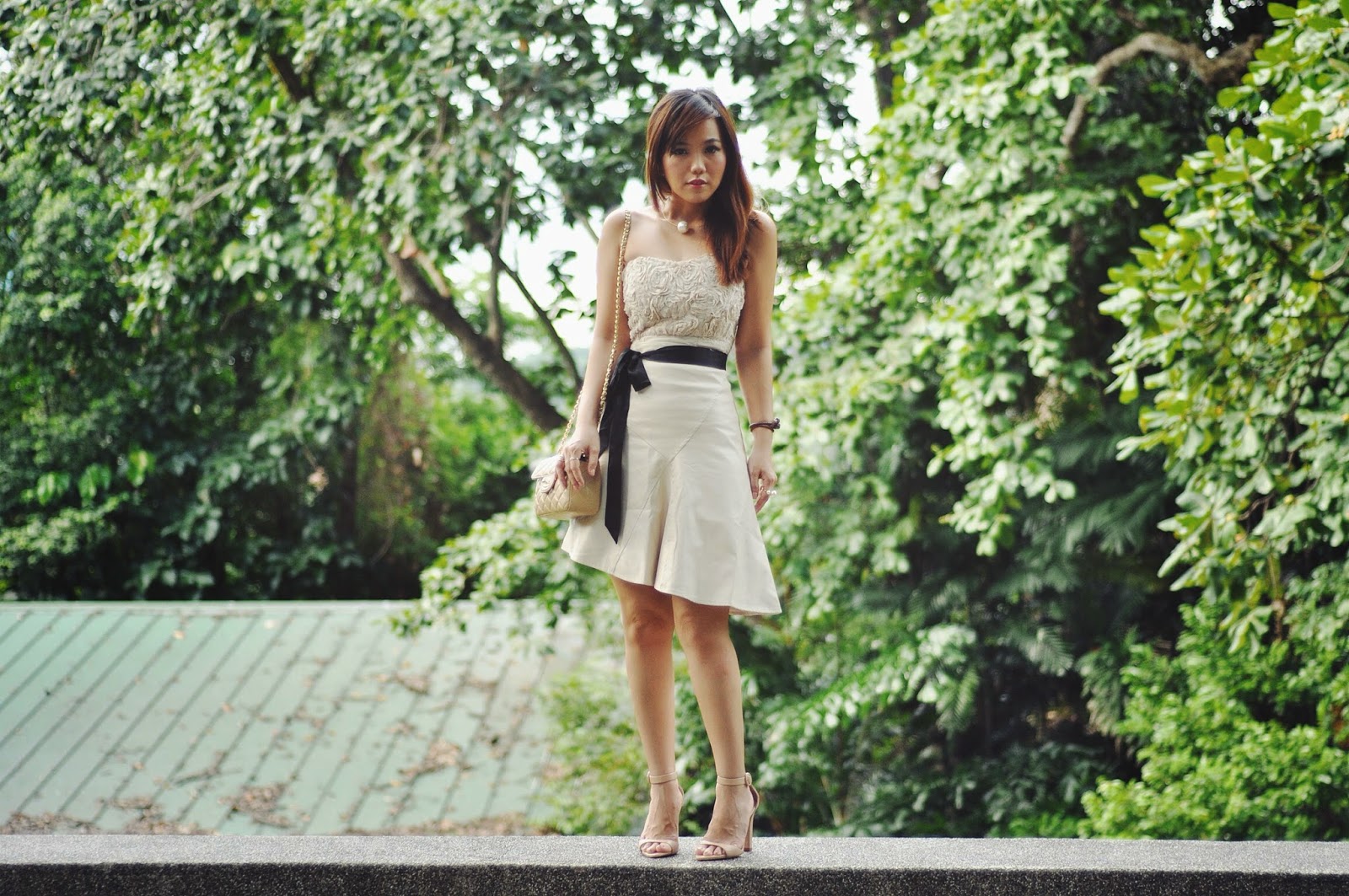 Beside my super busy work as a Landscape architect, another busy work now is digging my wardrobe, yay! After digged my wardrobe, i managed to find my bebe rosette silk bustier, so happy it still fit well.. 😉 Love the intricate detail and the contrast silk belt. I was planning to pair it with my pleather asymmetric hem skirt from frontrowshop with my simple ankle strappy zara heeled sandal..