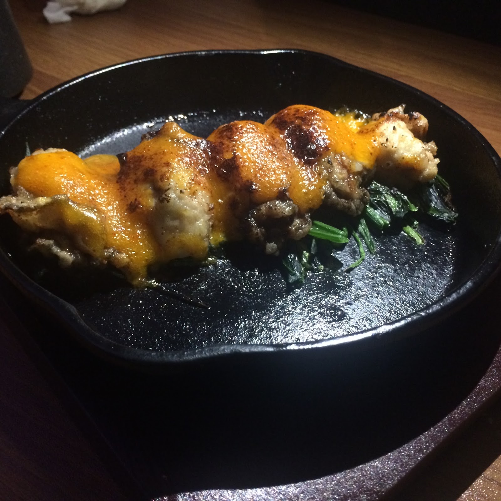 Oyster and Spinach Teppanyaki with Uni Sauce