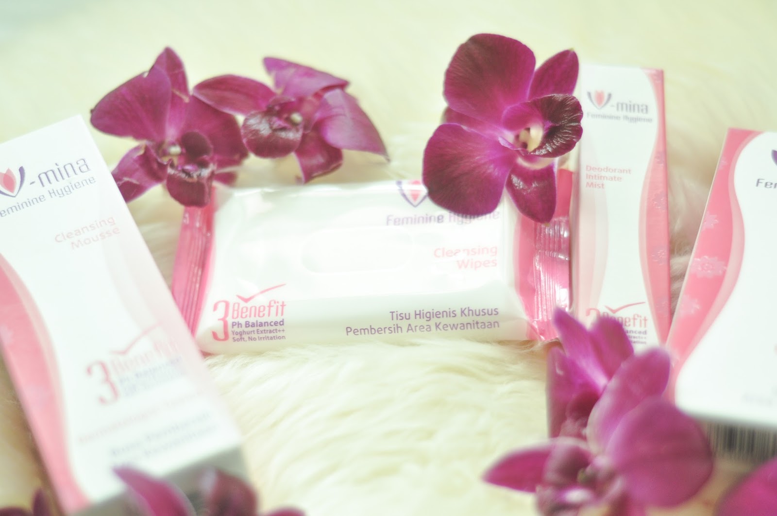 V-mina product range covering Cleansing Mousse, Cleansing Wipes, Lightening Intimate Gel and Deodorant Intimate Mist. All products are very compact in packaging so those are convenient to bring for traveling.