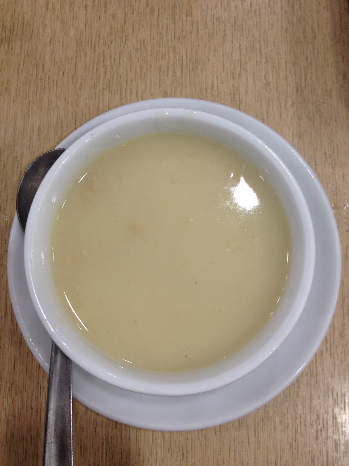 Chicken cream soup.. Creamy soup with few chunks of chicken inside..