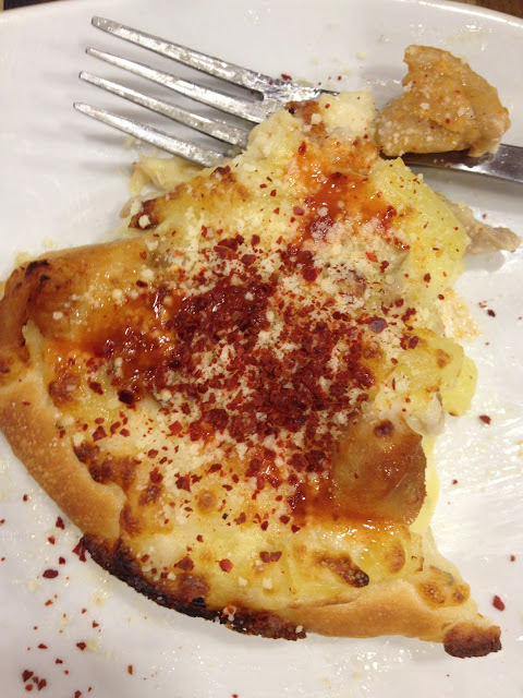 Smokey chicken breast, roasted chicken, pineapple bits, mushrooms, onions, green capsicums with alfredo base sauce