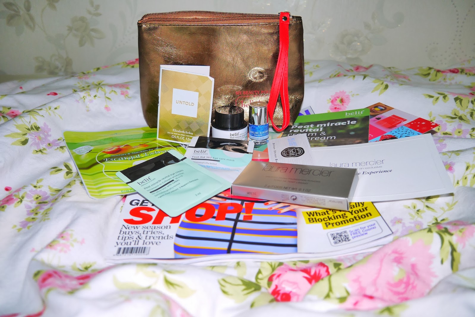 For this issue, Instead of box, Bellabox put all the sample products inside the bronze leatherette pouch, they call it “My Beauty Pouch”.. And it also came with a Cosmopolitan magazine.. Hmm.. Long time never read magazine LOL…