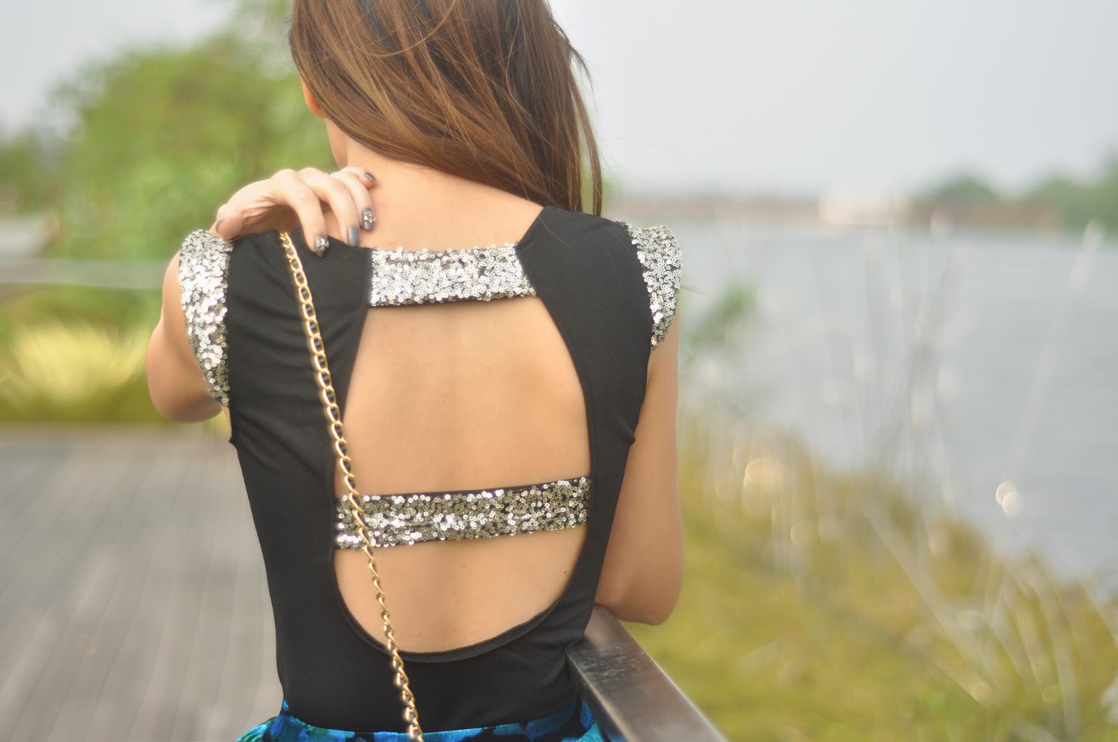 We had our dinner at Tim Ho Wan, since she really keen to try their Char Siew Bao and she gave me the little black dress with open back and sequin detail (i wore it as top here).. I paired it with my ASOS Velvet floral skater skirt to create this look.. Actually it’s more to cute & girly party look, but i wore it for an afternoon stroll.. LOL! 🙂