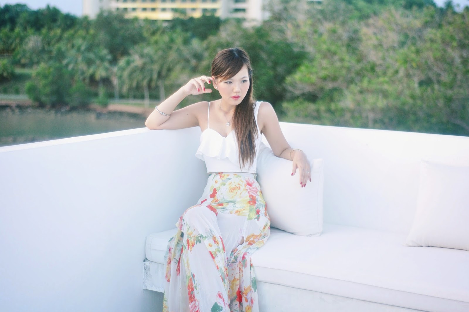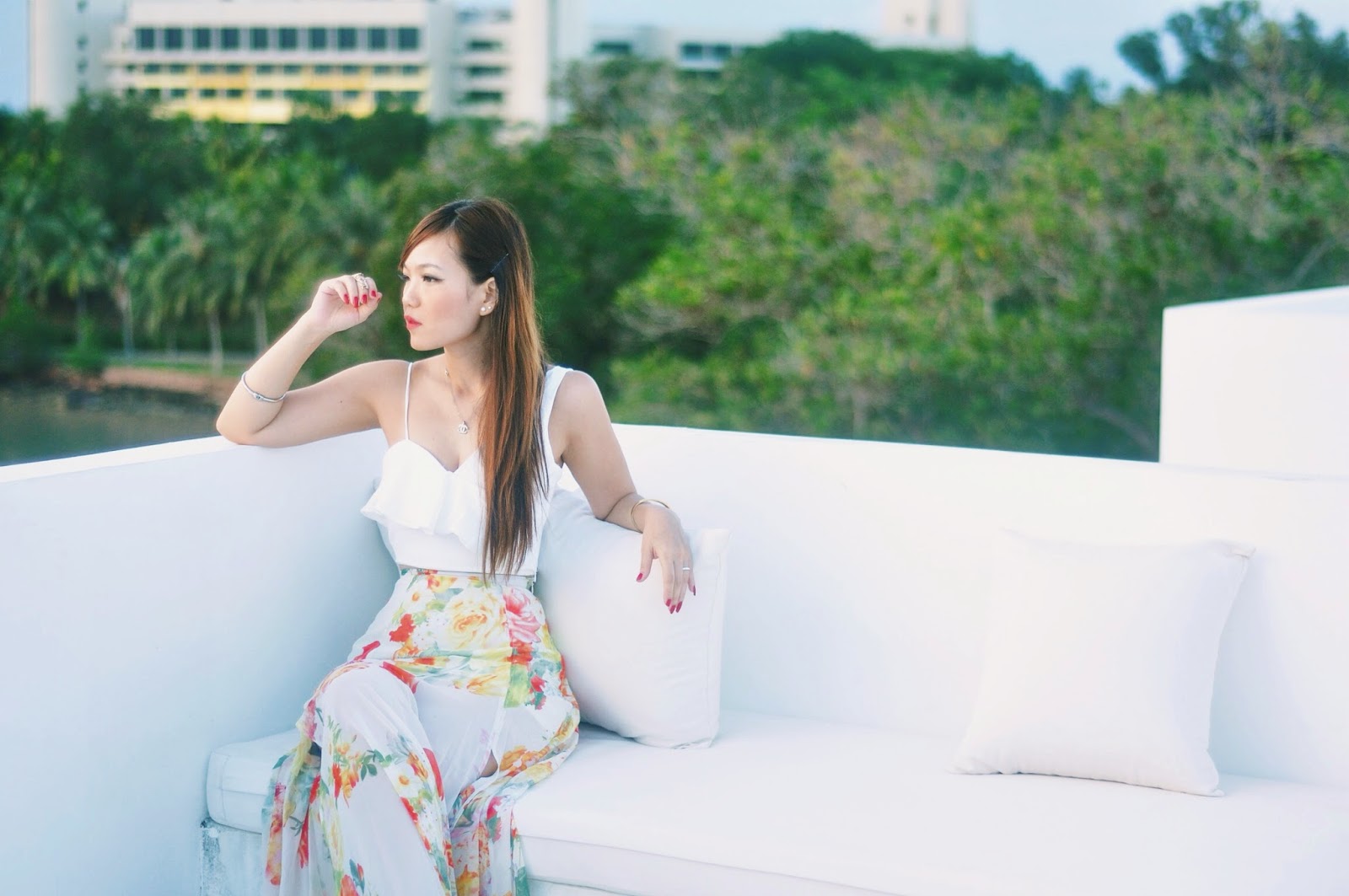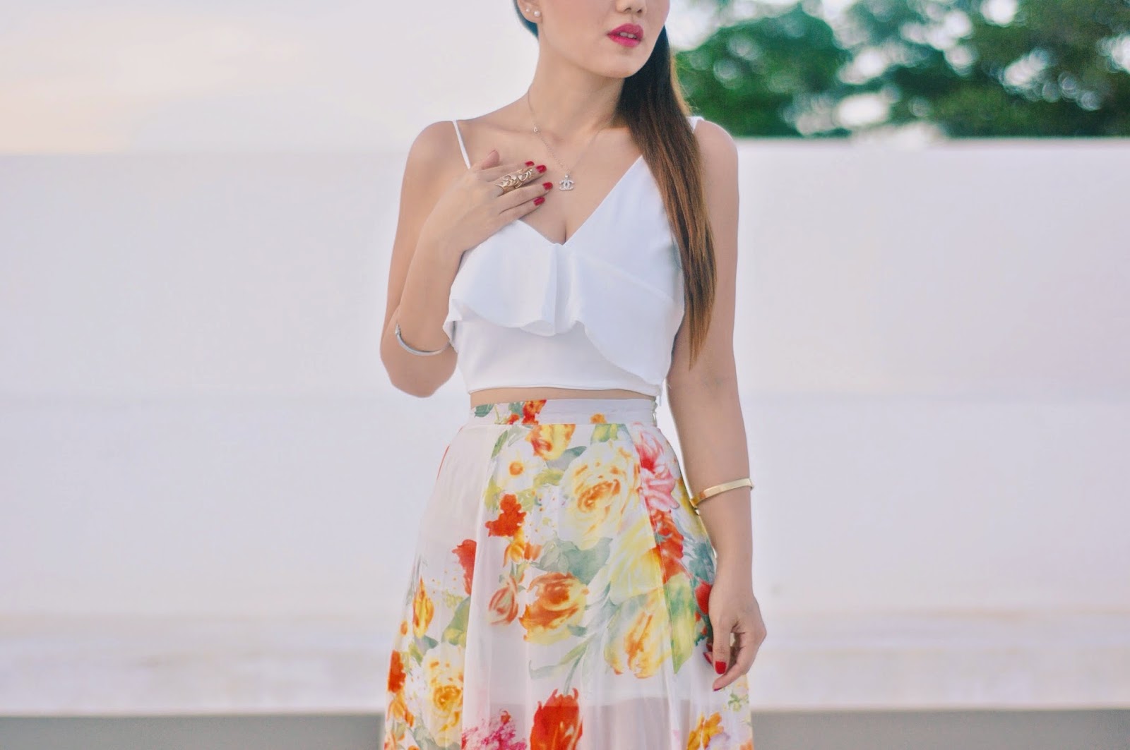 Anyway, my style here inspired by Resort Mood style, very perfect for holiday. The white top with ruffle detail is very versatile to match with tropical printed maxi skirt.. And not forgetting comfy sandal/heels with some accessorizing.. Voila! Resort style look! 🙂