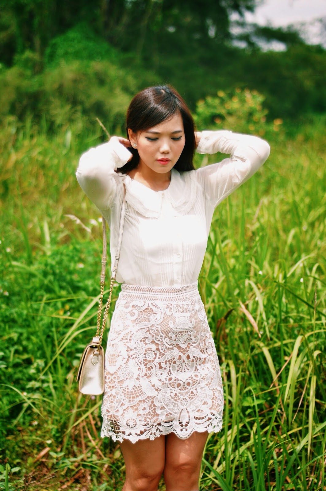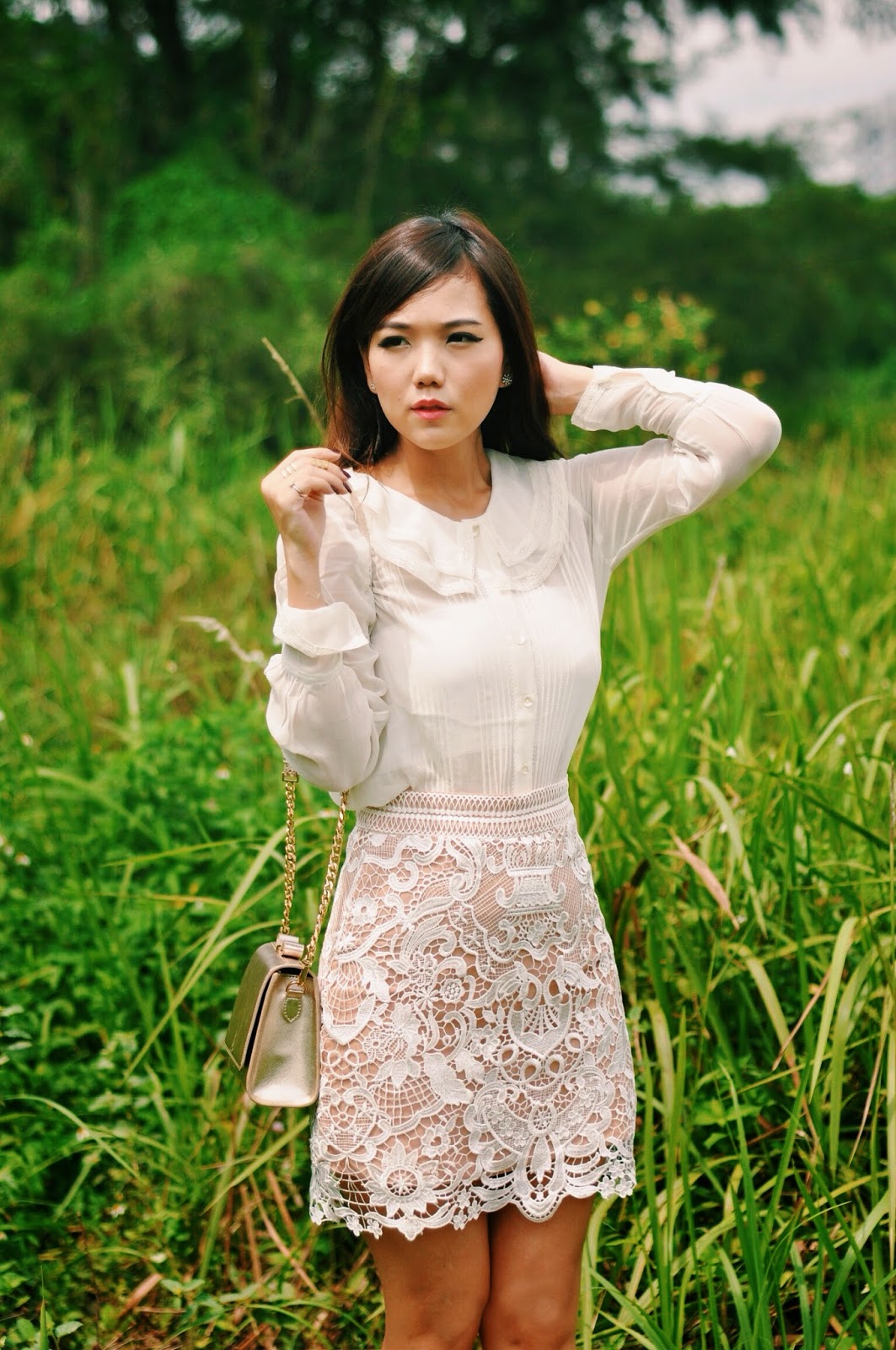The vintage feel on blouse is very match with inticate guipure detail on Thedancingjewels’ Caleb Skirt, creating a classic sweet look. The skirt detail is simply gorgeous and love it to bits. I always like sweet crochet and lace detail and i am a sucker for this kind of skirt. Thanks Thedancingjewels for send me “the love”.. 🙂