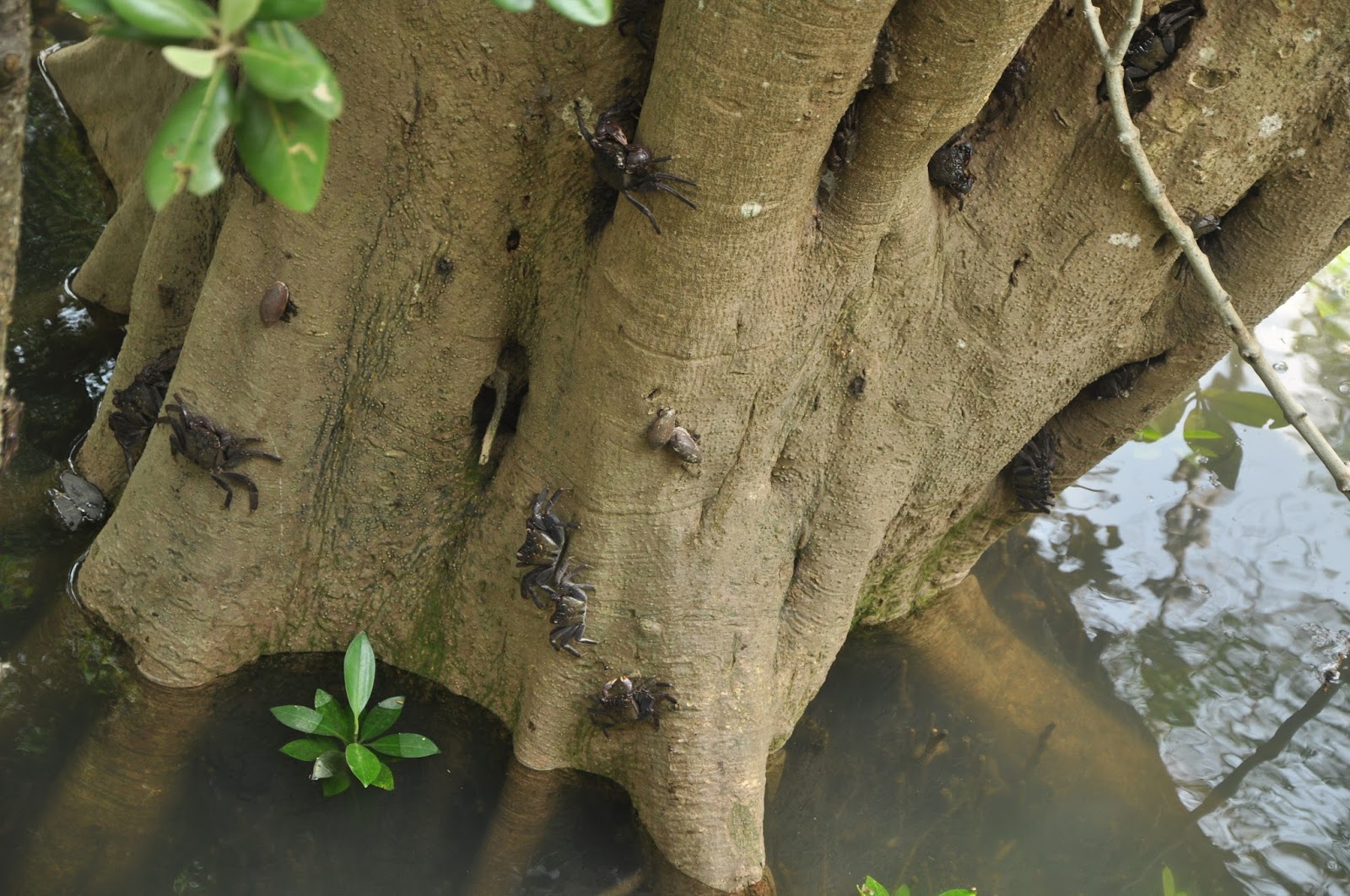 See those black crabs? They making holes on mangrove tree to fit their bodies.