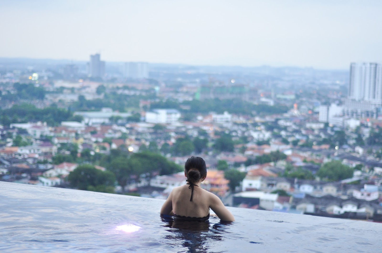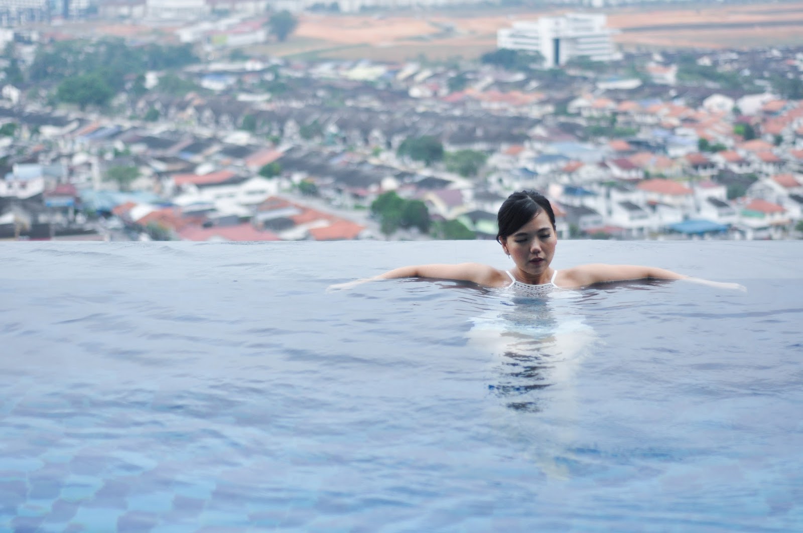 It’s pretty different view than infinity pool at Marina Bay Sands Singapore (will blog about the staycation soon) where you can see a lot of skyscrappers. I can say the view of JB city is more humble and human scale.
