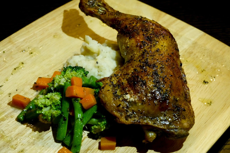 – Stuffed chicken leg roasted with fresh herbs and cream cheese.