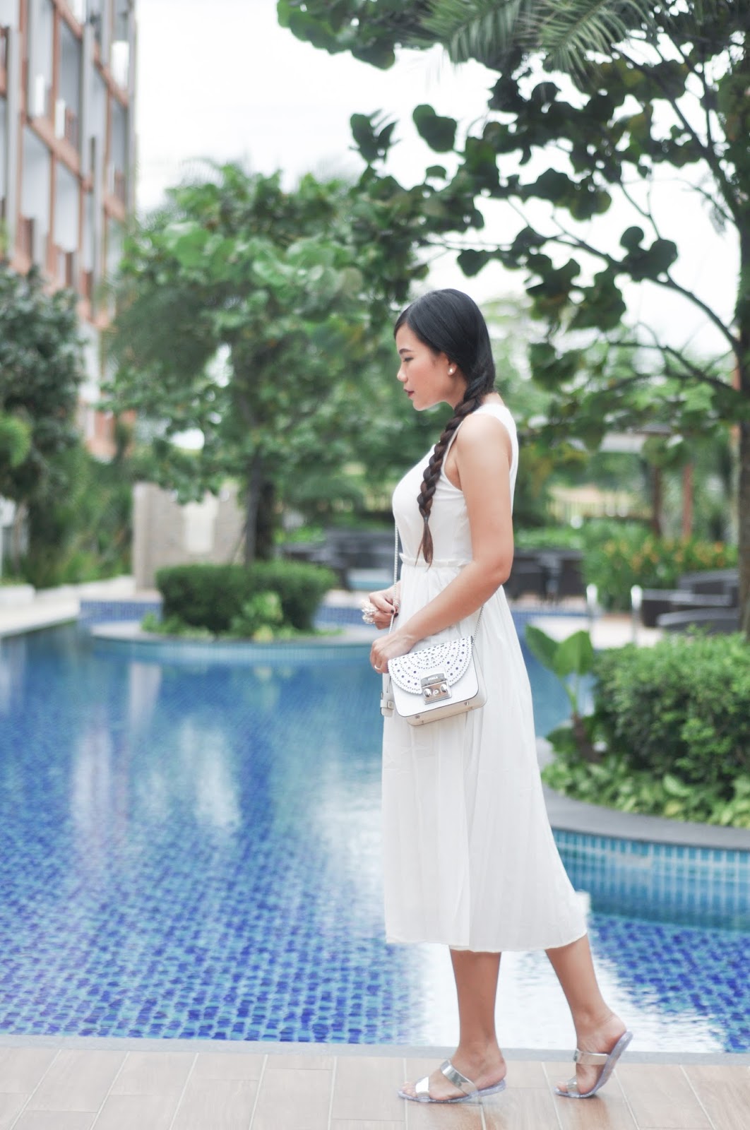 christmas, cotton on slip sandal, fashion, fashion blogger, fashion diary, festive outfit, Furla, furla metropolis mini crossbody, lovebonito, lucien angelica ring, lucien element, white, white dress