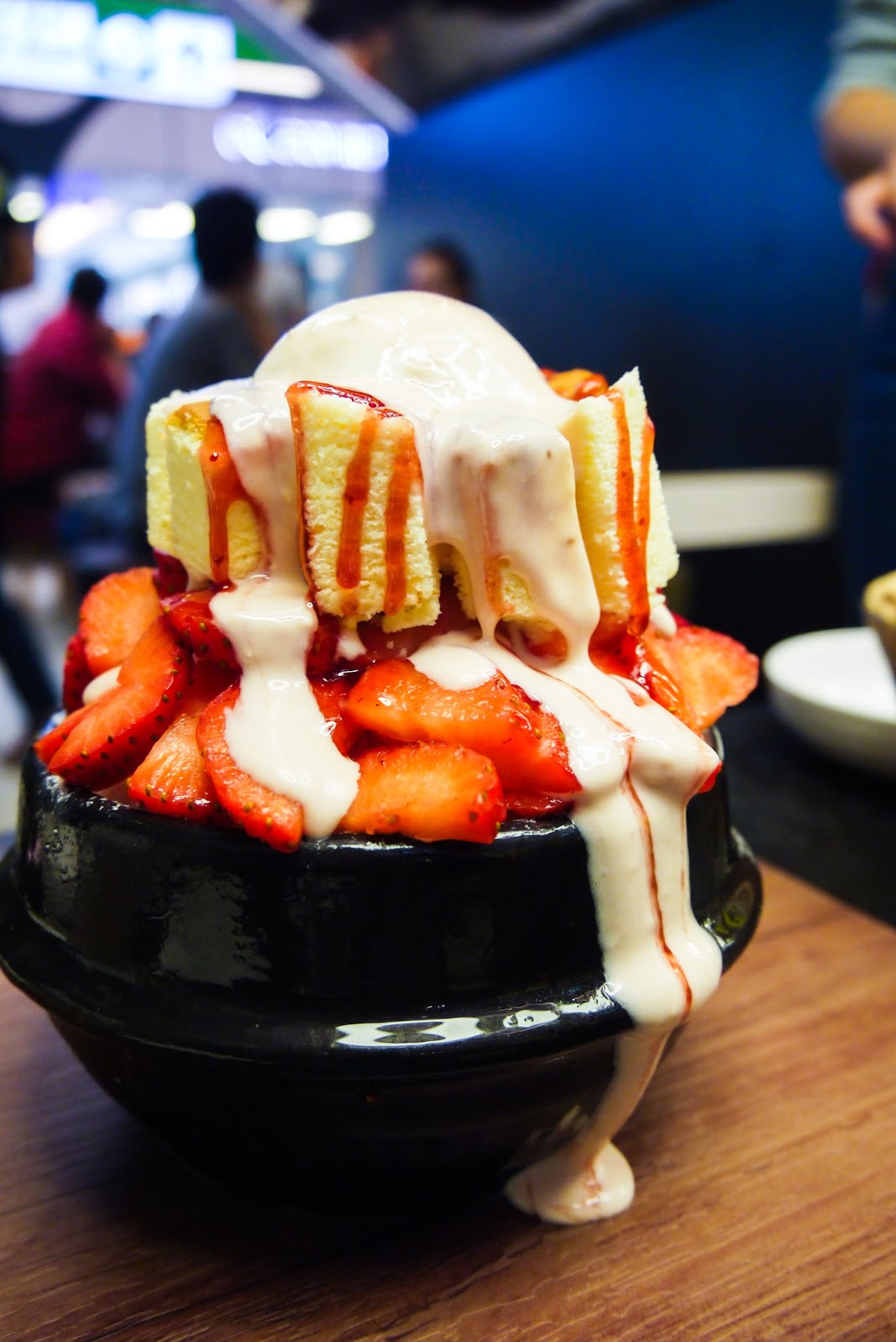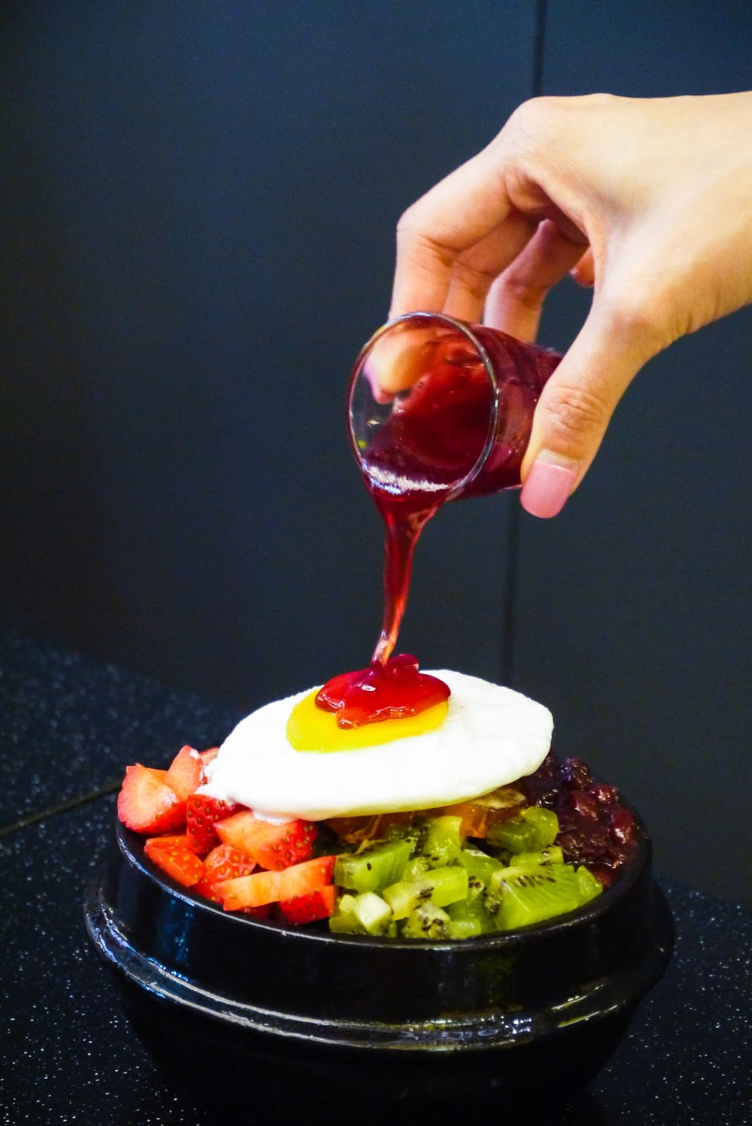 Yup! This bingsoo reminds you of Bibimbap, it’s just that all the veggie replaced with fruits and the “egg” is actually made from jelly.